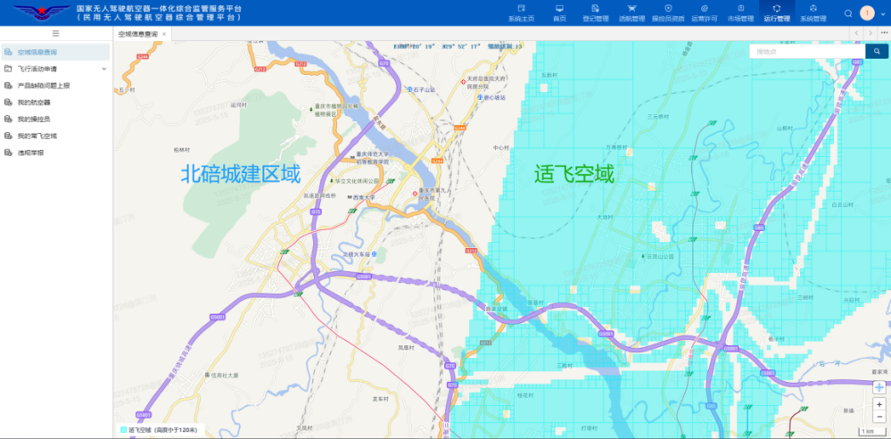 北碚区、荣昌区城建区域(包括Betway必威西汉姆联官方网站)均属于“管制空域”。