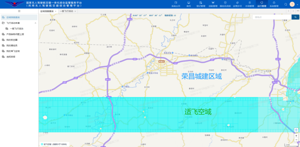 (1)在“UOM平台”内查询适飞空域和管制空域。未经空中交通管理机构批准,不得在管制空域内实施无人驾驶航空器飞行活动。