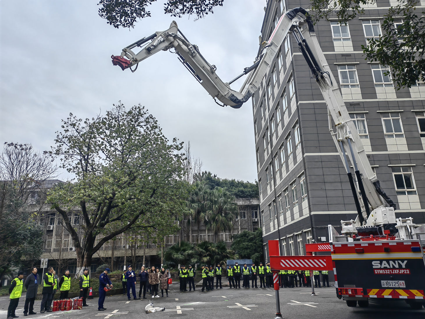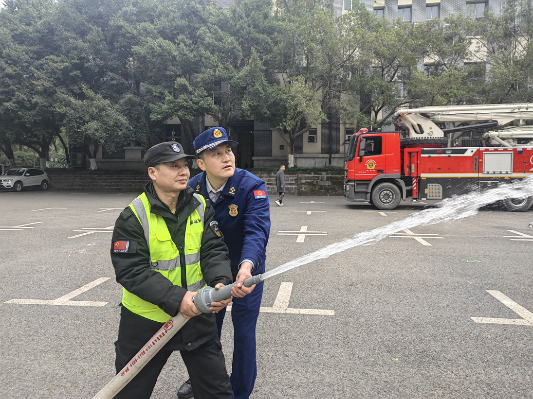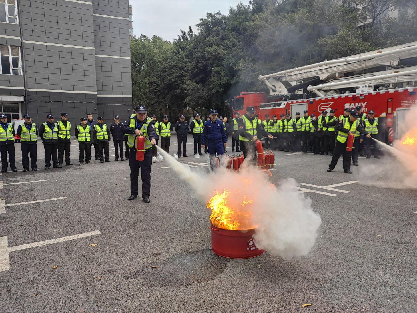 为深入贯彻学习习近平总书记关于安全生产重要论述精神,落实近期教育部、市教委有关安全文件精神,深刻汲取河南南阳火灾事故教训,有效提高学校综合巡逻队伍应急处置能力和防范技能,1月23日下午,学校组织校园综合巡逻队全体队员参加消防应急处突实战演练培训。北碚区城南消防救援站指导员龙云鹏莅临指导,保卫处处长鲁森、副处长杨进现场观摩。