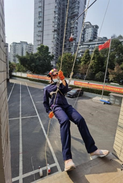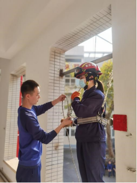 随后,同学们来到训练区,观摩消防员救援时施展的爬绳、绳索速降技术和日常甩水带技巧等。观摩结束后,同学们在消防“蓝朋友”的保护下,体验绳索速降和甩水带,大家纷纷表示虽然这些动作看似简单,但体验后才发现非常不易,从楼上速降下来时幸好有消防队员的指导,才能够顺利落地,而且甩水带也不是一件轻松的事情,都是需要长期的训练才能获得的技能。消防员还与同学们开展了亲切的互动教学,在轻松活泼的氛围中使同学们对消防知识入脑入心。