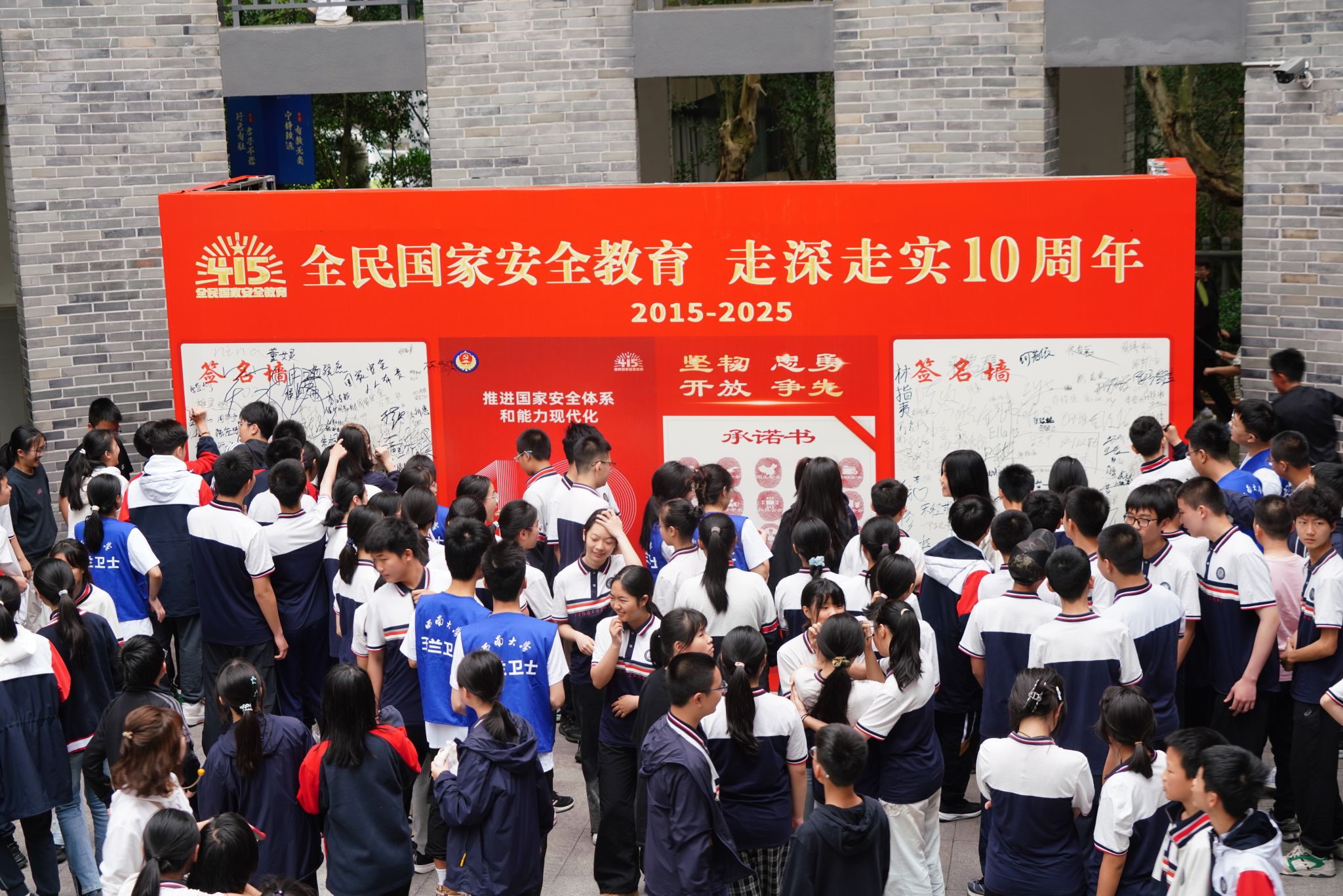 本次活动通过签名倡议、主题课堂、互动问答等形式,向初、高中生普及国家安全知识。4月11日上午,西大附中学子在“全民国家安全教育”签名墙上郑重签名,承诺以实际行动守护国家安全;主题课堂上,玉兰卫士班国家安全宣讲团成员围绕粮食安全、太空安全、生物安全等领域,结合实际案例,生动讲解国家安全知识,同学们认真聆听,积极回应;互动问答中,大家踊跃分享学习心得,表示通过本次宣传讲解,加深了对总体国家安全观的理解,今后要从自身做起,从小事做起,为维护国家安全贡献力量。