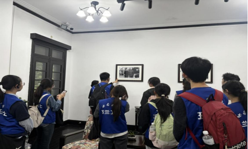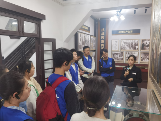 重庆抗战遗址博物馆是英雄重庆的见证,承载着厚重的历史记忆。雨丝斜织中,同学们跟随讲解员王老师拾级而上,先后参观了“云岫楼”“松厅”等历史建筑。展馆内,一件件珍贵文物、一幅幅历史照片、一段段感人故事,将大家带回了那个战火纷飞、民族危亡的年代。面对先烈们曾经战斗和生活过的遗迹,同学们神情肃穆,内心深受震撼。最让同学们动容的是“舌战群儒”场景复原。在“草亭”小会议室,王老师介绍:“1940年10月,周恩来、叶剑英曾在此与蒋介石举行皖南事变后的紧急谈判,双方唇枪舌剑,最终达成继续合作抗日的共识。这里既是国共第二次合作的重要舞台,也是国际反法西斯统一战线在中国的缩影。”